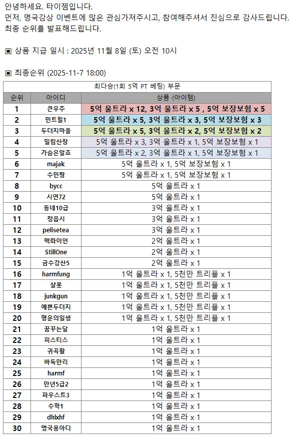 [À̺¥Æ®] ¸í±¹°¨»ó º£ÆÃ À̺¥Æ® ÃÖÁ¾ ¼øÀ§ ¹ßÇ¥