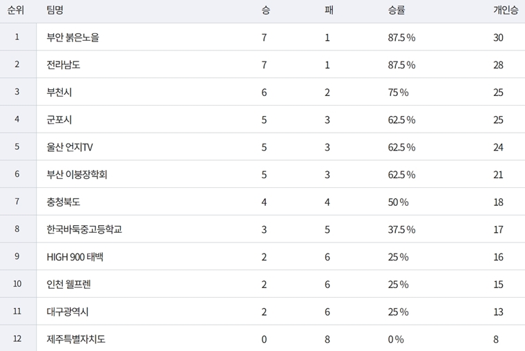 ²öÁú±â°Ô ¼±µÎ¸¦ Ãß°ÝÇÏ´ø Àü¶ó³²µµ´Â ¼¼ °æ±â¿¡¼ ¸ðµÎ ½Â¸®Çϸç 1À§ ºÎ¾È°ú ¾î±ú¸¦ ³ª¶õÈ÷ Çß´Ù. µÎ ÆÀÀº ½ÂÆÐ¿¡¼ µ¿·üÀ» ÀÌ·ðÀ¸³ª °³ÀÎ ½Â¼ö¿¡¼ ¾Õ¼± ºÎ¾ÈÀÌ 1À§, Àü¶ó³²µµ°¡ 2À§¸¦ ±â·ÏÇÏ¸ç ¼±µÎ °æÀïÀ» À̾°Ô µÆ´Ù.