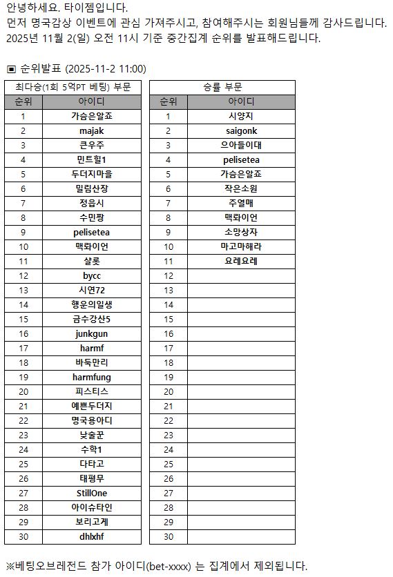 [À̺¥Æ®] ¸í±¹°¨»ó º£ÆÃÀ̺¥Æ® Áß°£Áý°è ¹ßÇ¥ (11/2)