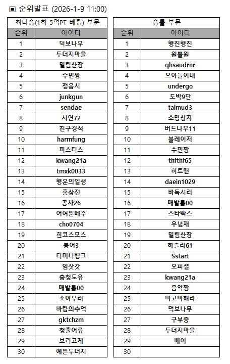 2026³â 1¿ù 9ÀÏ(±Ý) ¿ÀÀü 11½Ã ±âÁØ Áß°£Áý°è ¼øÀ§¸¦ ¹ßÇ¥ÇØµå¸³´Ï´Ù.