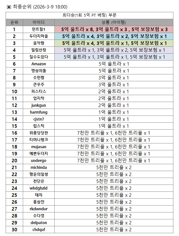 [À̺¥Æ®] ¸í±¹°¨»ó º£ÆÃ À̺¥Æ® ÃÖÁ¾ ¼øÀ§ ¹ßÇ¥